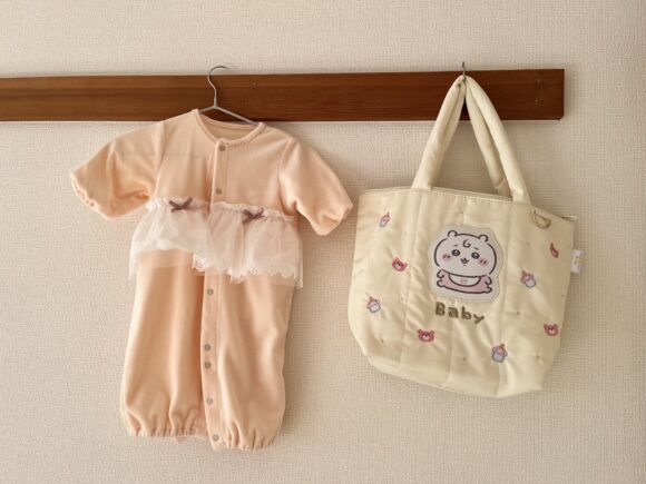 パパは可愛いベビー服とこだわりの「ちいかわベビー」のトートバッグを