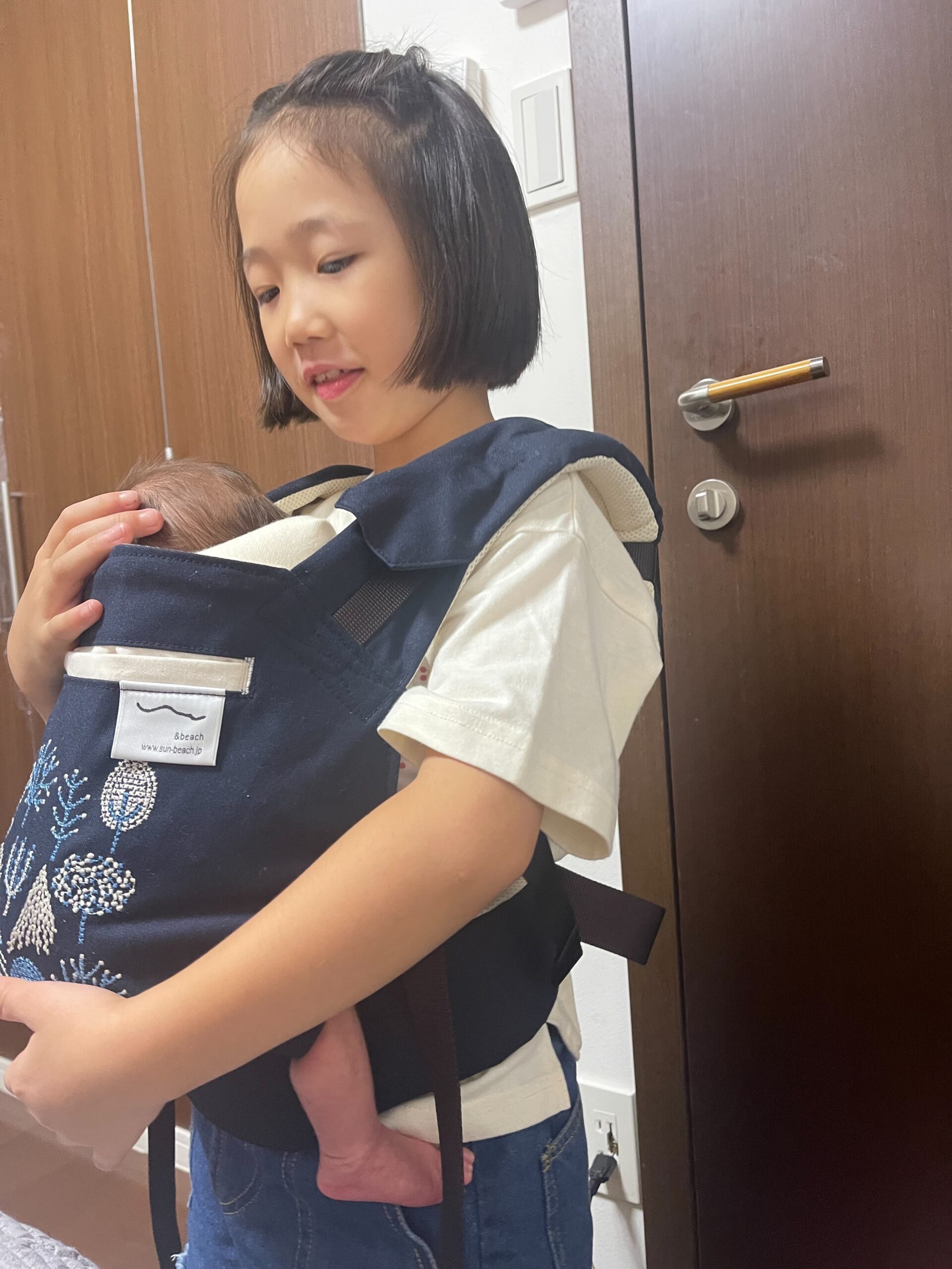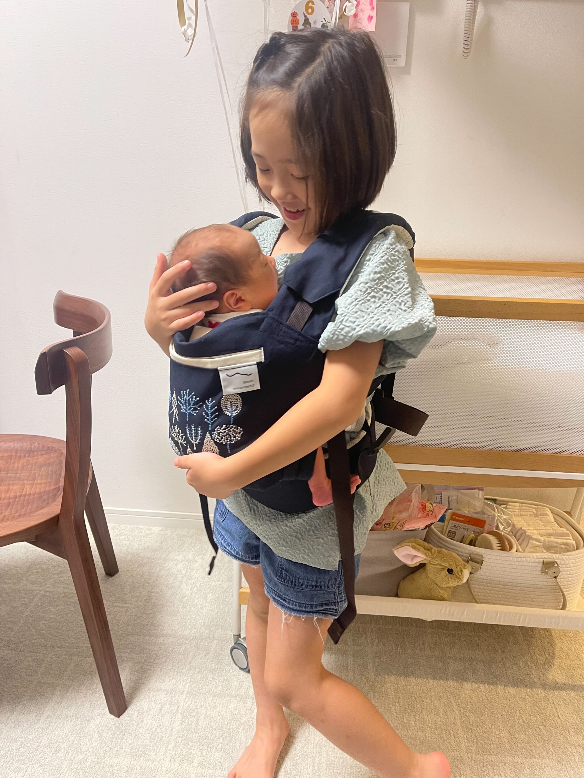 ちょっと小さめサイズの抱っこ紐を買ってもらったお姉ちゃんは